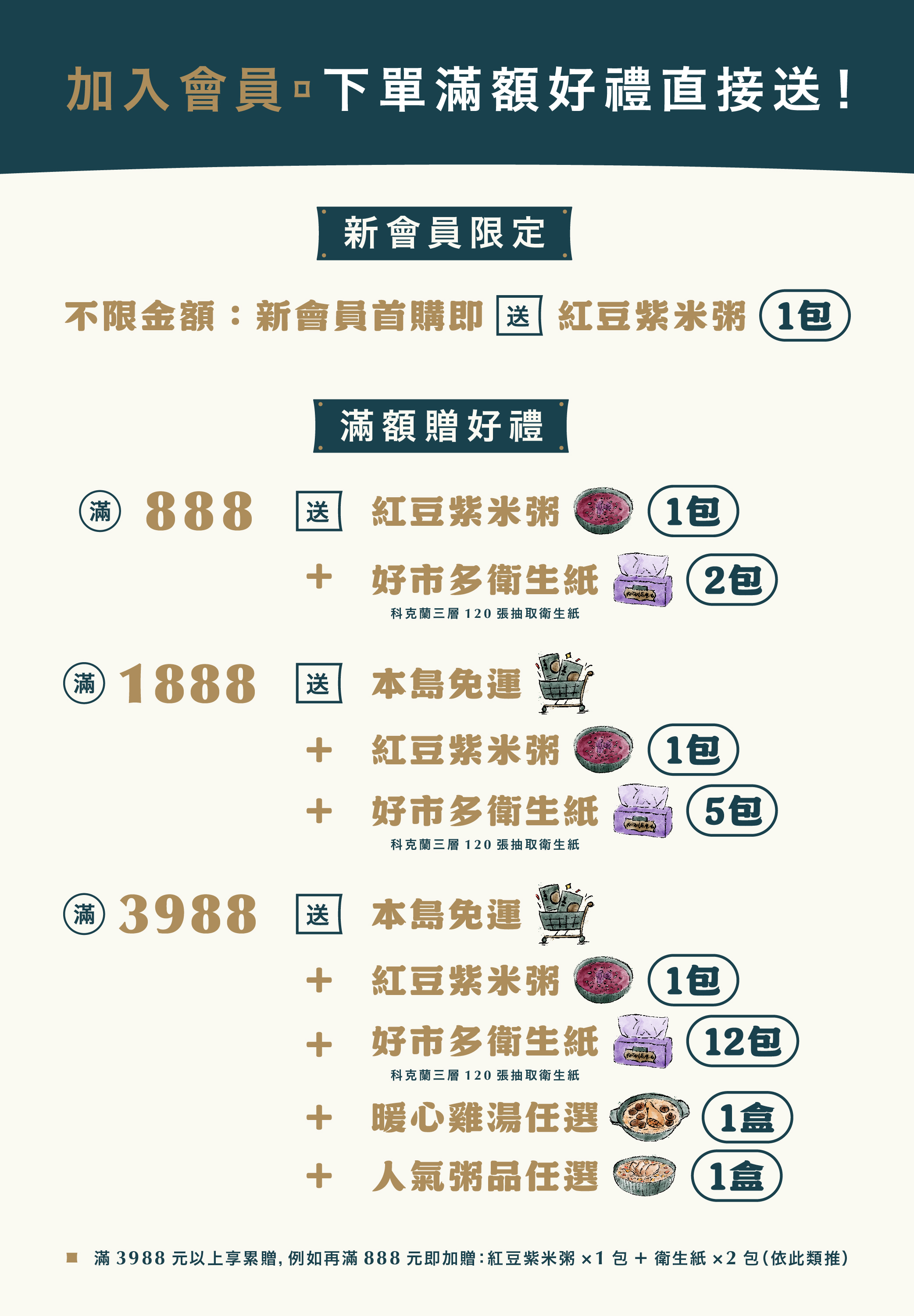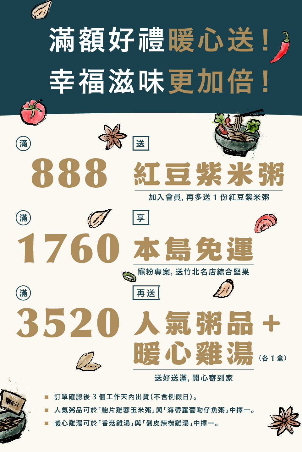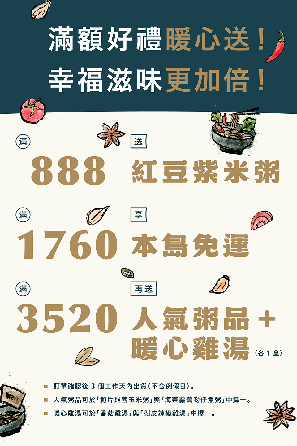A:台灣本島地區滿 1,760 元免運費,離島地區滿 2,490 元免運費。